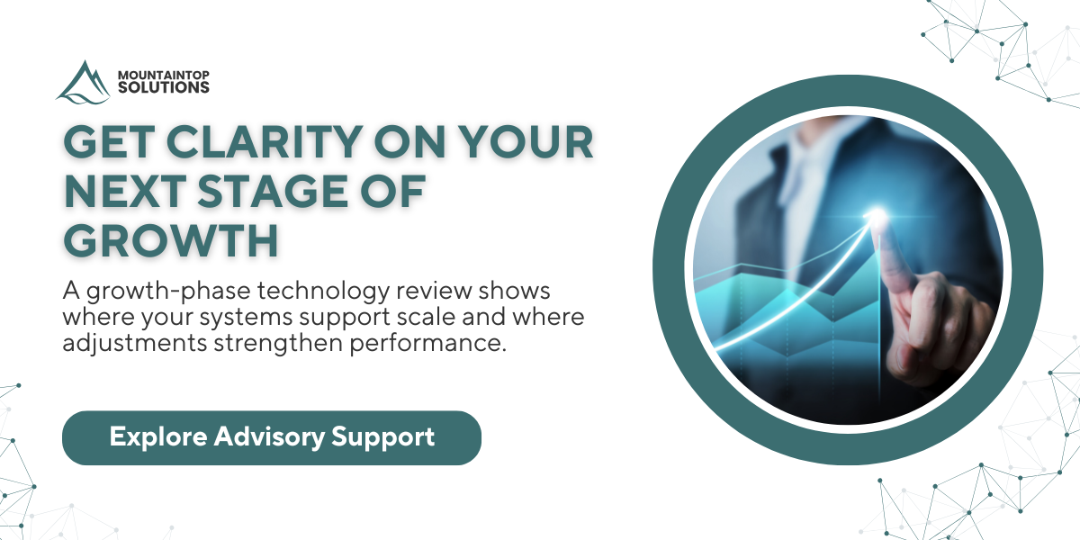 If you want clarity on how well your current systems support your next stage of scale, schedule a growth-phase technology review with MountainTop Solutions now.